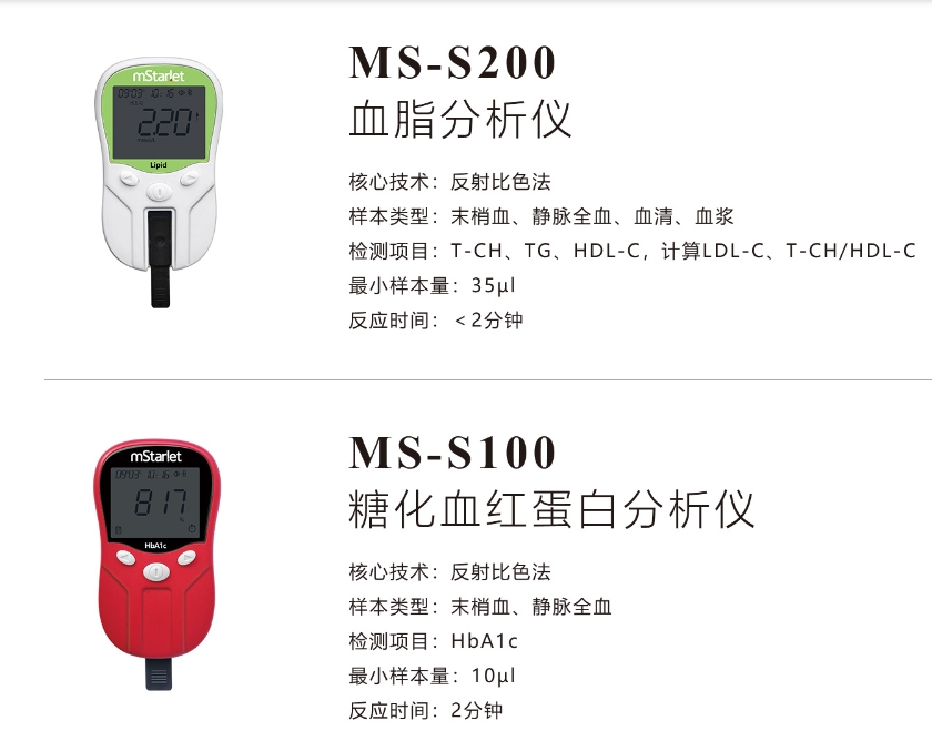檢測項目:血脂四項、HbA1c、Hcy樣本量:10/35ul反應時間: HbA1c3分鐘,血脂四項2分鐘,Hcy5分鐘